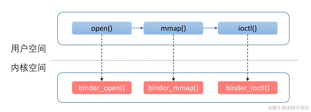 这其中,有三个函数尤为重要,它们是:binder_open,binder_mmap和binder_ioctl。 这是因为,需要使用Binder的进程,几乎总是先通过binder_open打开Binder设备,然后通过binder_mmap进行内存映射。