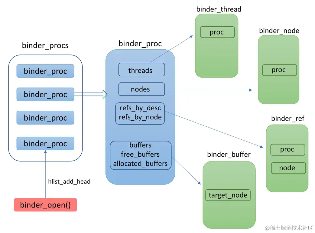 | binder_buffer | 描述Binder通信过程中存储数据的Buffer |