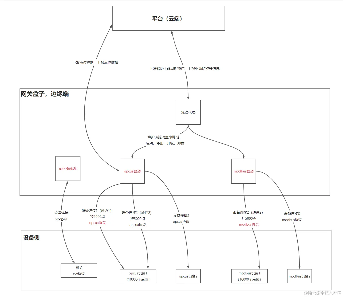 - 驱动代理程序是对驱动进程的生命周期管理(包括驱动的创建、启动、停止、升级、卸载等),并且监控驱动进程相关状态,与平台维持心跳链接与驱动状态上报;