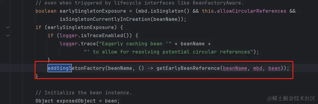 singletonObject = singletonFactory.getObject();