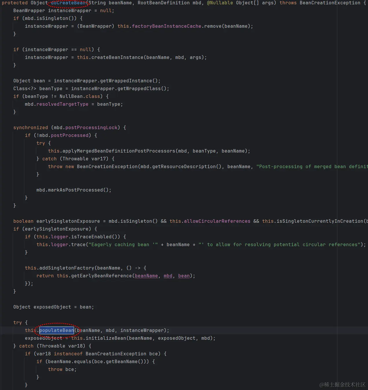 需要重点关注doCreateBean和populateBean两个方法。