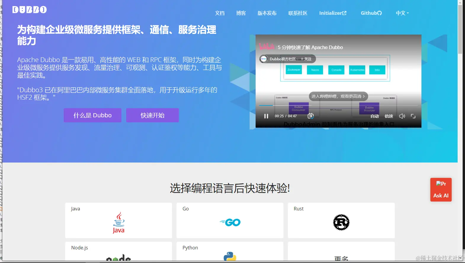 Dubbo中文官网:cn.dubbo.apache.org/zh-cn/