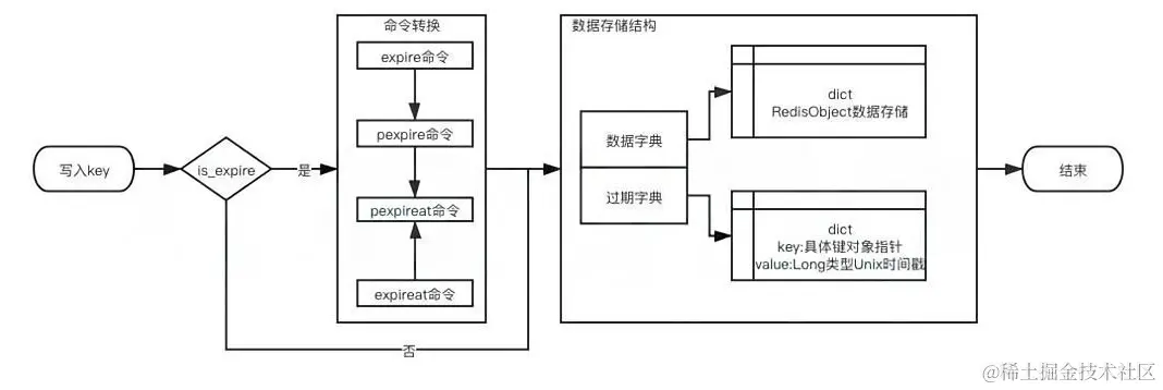 - Rediskey过期时间内部流程图: