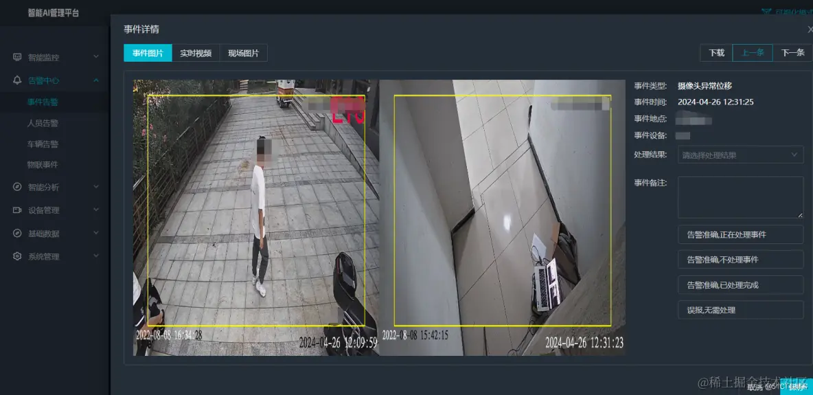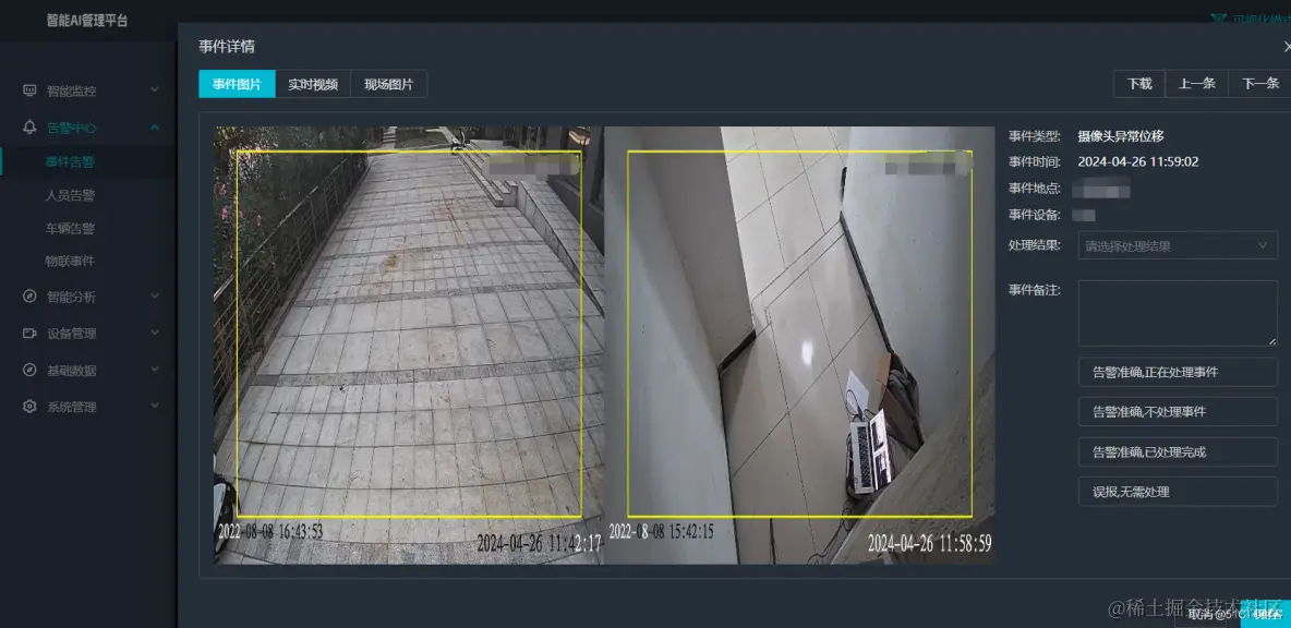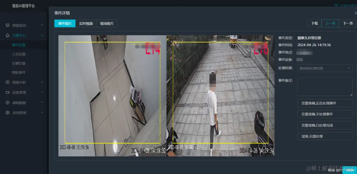 这种自动化的监控方式大幅减轻了人力负担,提高了监控的准确性和可靠性,从而提升了安全监控的效率和效果。在预防安全事故的发生方面,摄像头异常位移检测算法具有重要意义。例如,在商场、医院、交通路口等场景中,摄像头的异常移动可能预示着潜在的安全风险,如有人闯入禁区或发生紧急情况。该算法能够及时发现这些异常情况,并通过实时报警提醒相关人员采取措施进行干预和处理,从而保护人员生命财产安全。