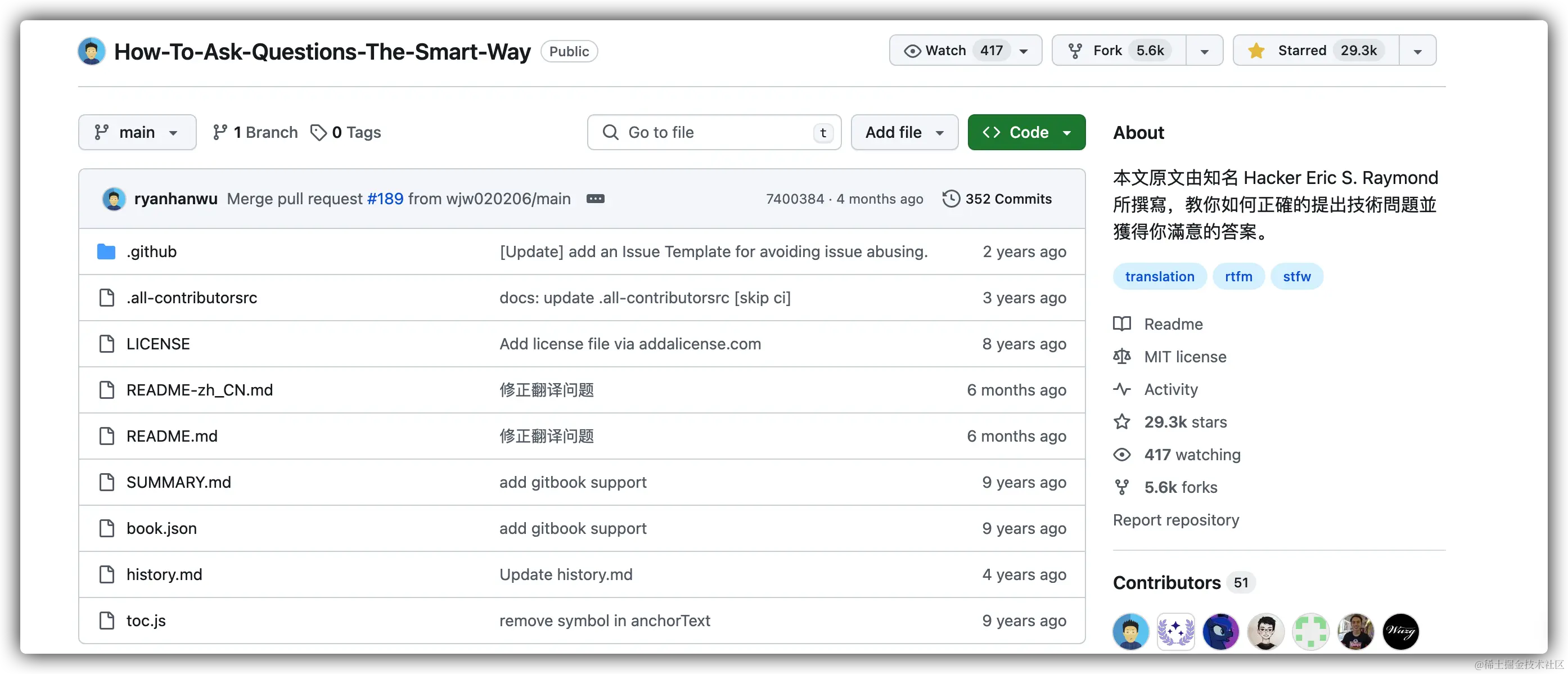 早在十年前,有个 github 仓库叫做 How-To-Ask-Questions-The-Smart-Way 翻译过来是【如何聪明的提问】,目前已经有了 29.3k 的 star 数,由此可见这个话题的优秀和重要程度。