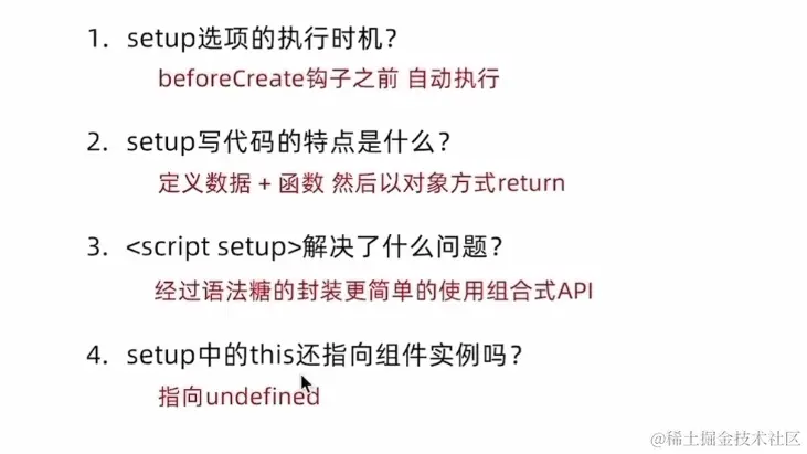 - 组件 API:学习 Vue 3 中组件的各种 API,包括 setup 函数、生命周期钩子、provide/inject、props 等。