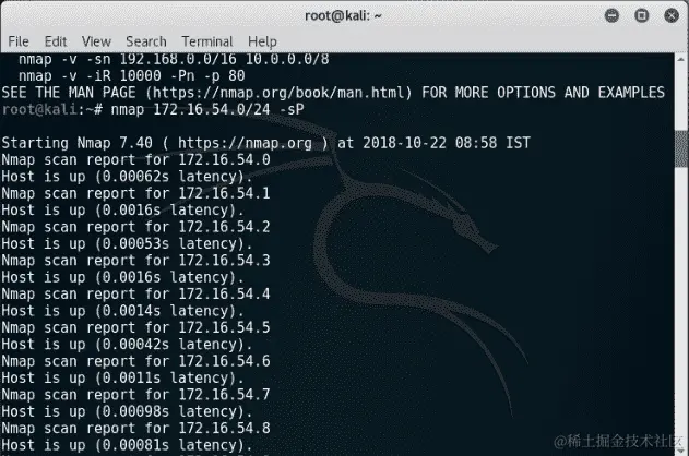 查找目标网络中哪台机器是可用的。如果目标机器不可用,我们将不会继续对该机器进行渗透测试,并将移动到下一台机器。
