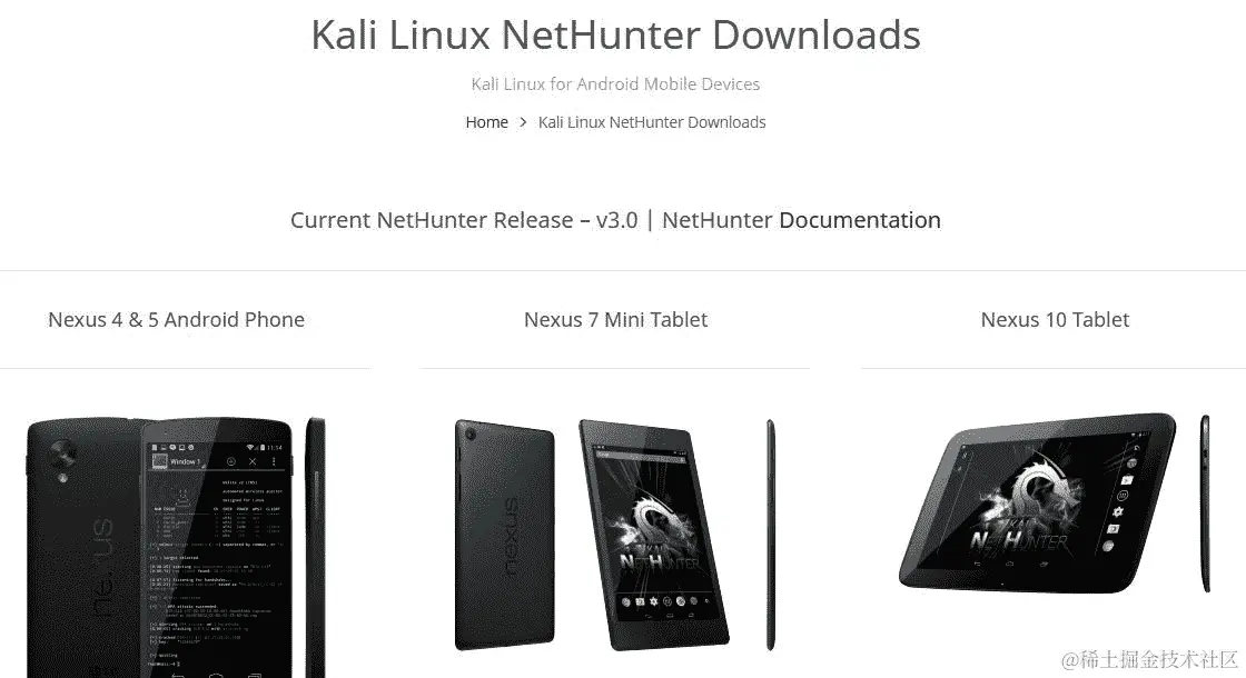 Kali NetHunter v3.o 可以从 Offensive Security 网站www.offensive-security.com/kali-linux-nethunter-download/下载。