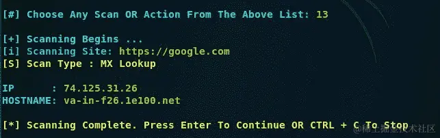 对Google.com进行 MX 查找(选项13)得到以下输出:
