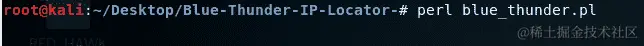 在终端中,导航到 Blue-Thunder-IP-Locator 目录,输入perl blue_thunder.pl命令,然后按Enter: