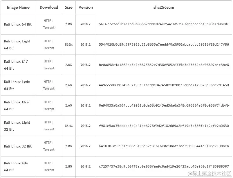 在下载页面上,您可以根据以下项目选择官方的 Kali Linux 镜像: