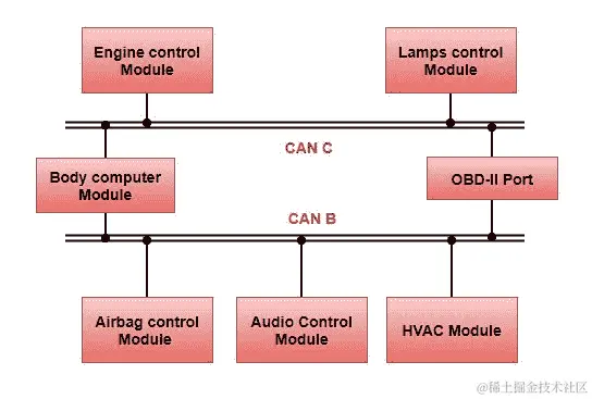 大多数连接的汽车包括一个控制器区域网络,它将所有汽车的组件(传感器、气囊等)与中央控制单元连接起来。控制器区域网络的标准自 1993 年以来已被 ISO 接受和发布: