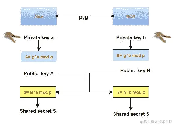 Diffie-Hellman 密钥交换:Diffie-Hellman 密钥交换是一种在此操作期间创建密钥而无需共享和交换信息的方法。