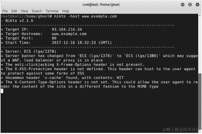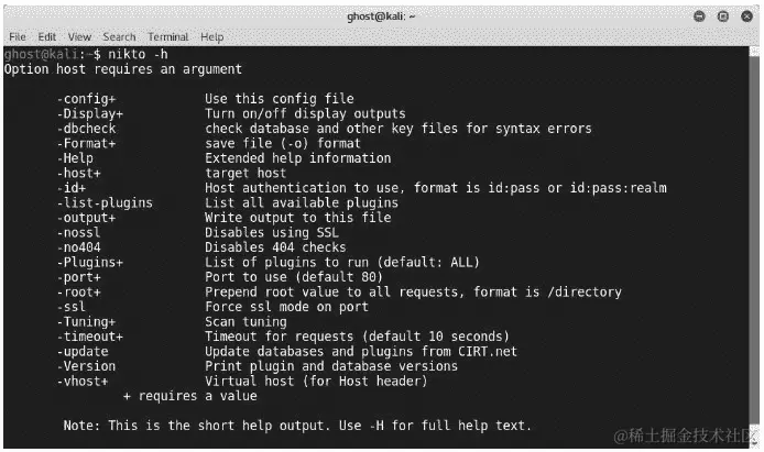 如果你想使用 Nikto 扫描你的网络应用程序界面,请输入以下命令: