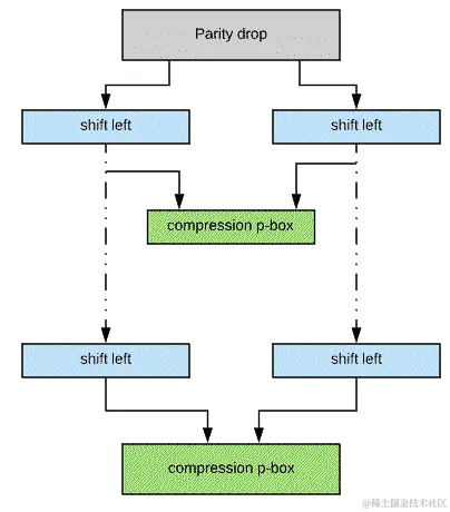 初始和最终置换由两个逆置换盒(P 盒)完成: