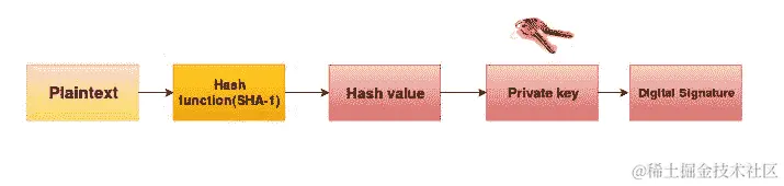 数字签名的主要目标是验证消息或文档的真实性和完整性。您可以将其视为电子指纹。以下图表显示了签署文件的步骤: