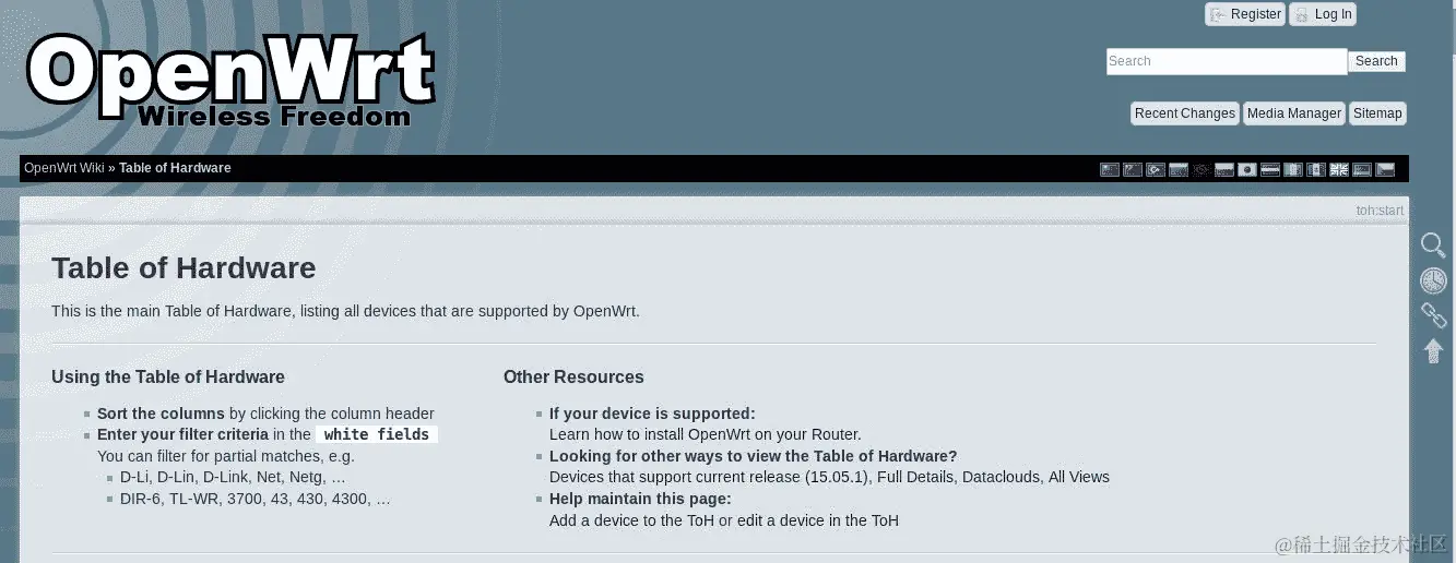 设备是物联网项目的核心组件。在本小节中,我们将探讨硬件威胁,并在另一个点讨论框架攻击。物理安全在信息安全中起着重要作用。未受保护的设备对您的架构构成真正的威胁。暴露的设备很容易受到攻击。因此,黑客可以通过公开可用的数据表和大多数使用的知名设备的必需信息在线收集有关设备的信息。网站,如wiki.openwrt.org帮助用户了解各种设备,如路由器和网关的详细信息: