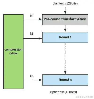 RC6 是从 RC5 派生而来,块大小为 128 位,密钥大小灵活。