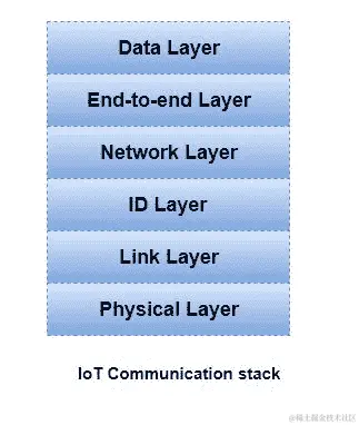 物联网通信堆栈类似于 OSI 网络模型。它代表了不同层之间的所需功能和交互。它由以下层组成:
