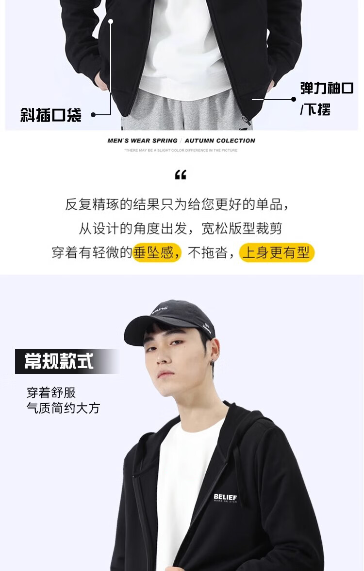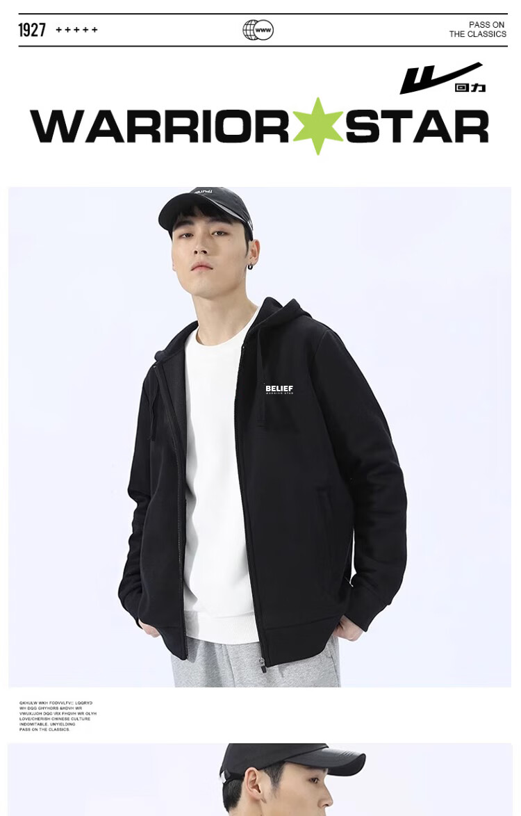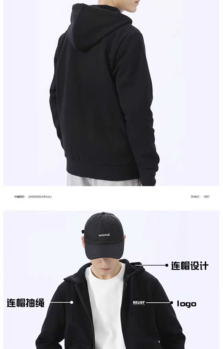 "title": "回力外套男连帽开衫卫衣男春秋季潮流宽松休闲简约高街针织运动上衣",