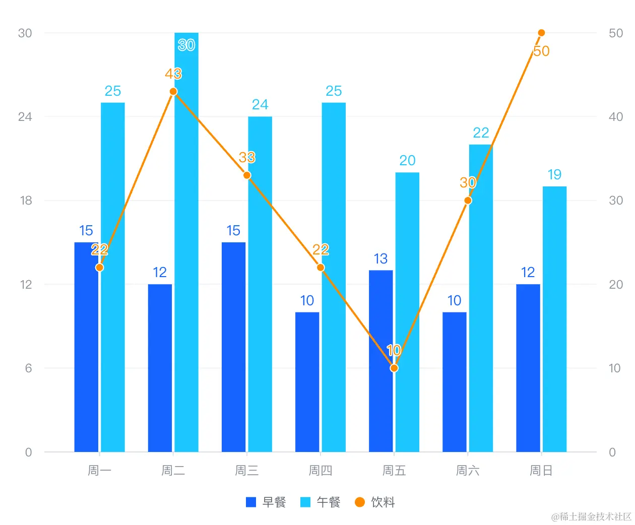 VChart 中可以添加一个右轴,绑定对应的series实现,参考 demo: visactor.io/vchart/demo…
