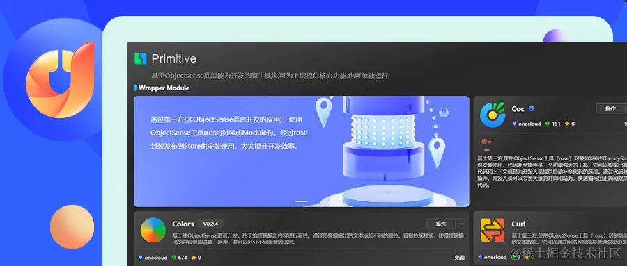 Primitive:这是一系列基于ObjectSense底层能力开发的原生模块。它们不仅为上层应用提供了稳定可靠的核心功能支持,同时也能够作为独立组件运行,为用户提供更加灵活的开发选择。