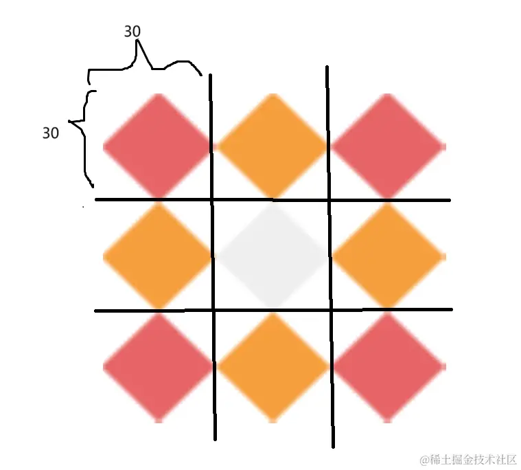 这是一个长宽为30px的图片如果设置他的切片为30,则切片按上图切片方式则是这个如下:
