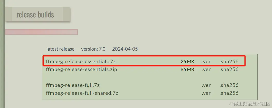 首先到 ffmpeg 的安装网页:www.gyan.dev/ffmpeg/buil…