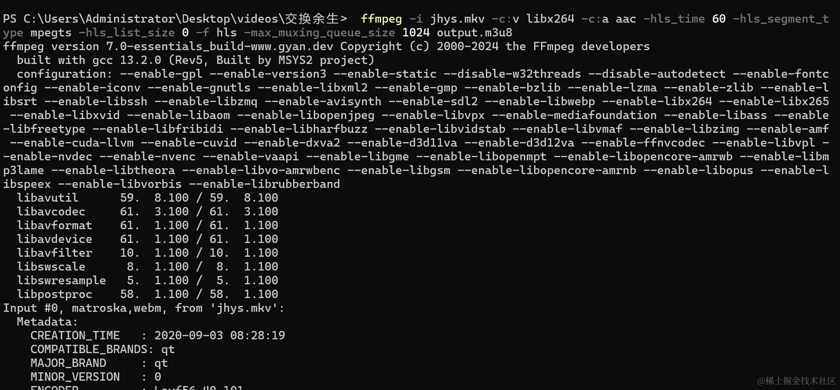 - -hls_segment_type mpegts 指定了 M3U8 片段的类型为 MPEG-TS。