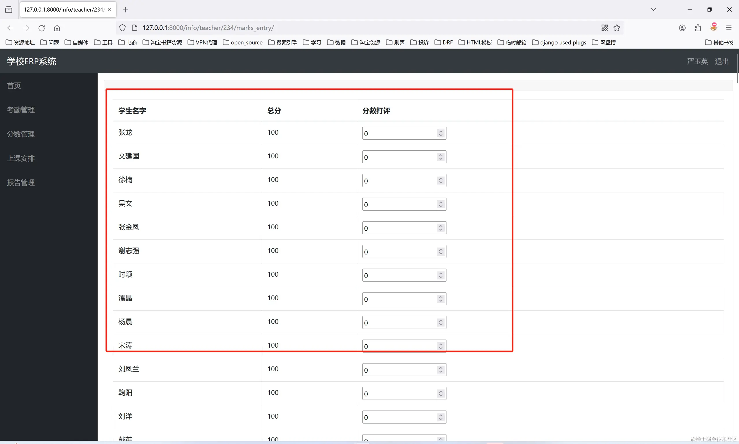 - 针对每名学生打分:为每个学生打分,记录他们的平时表现和作业完成情况。