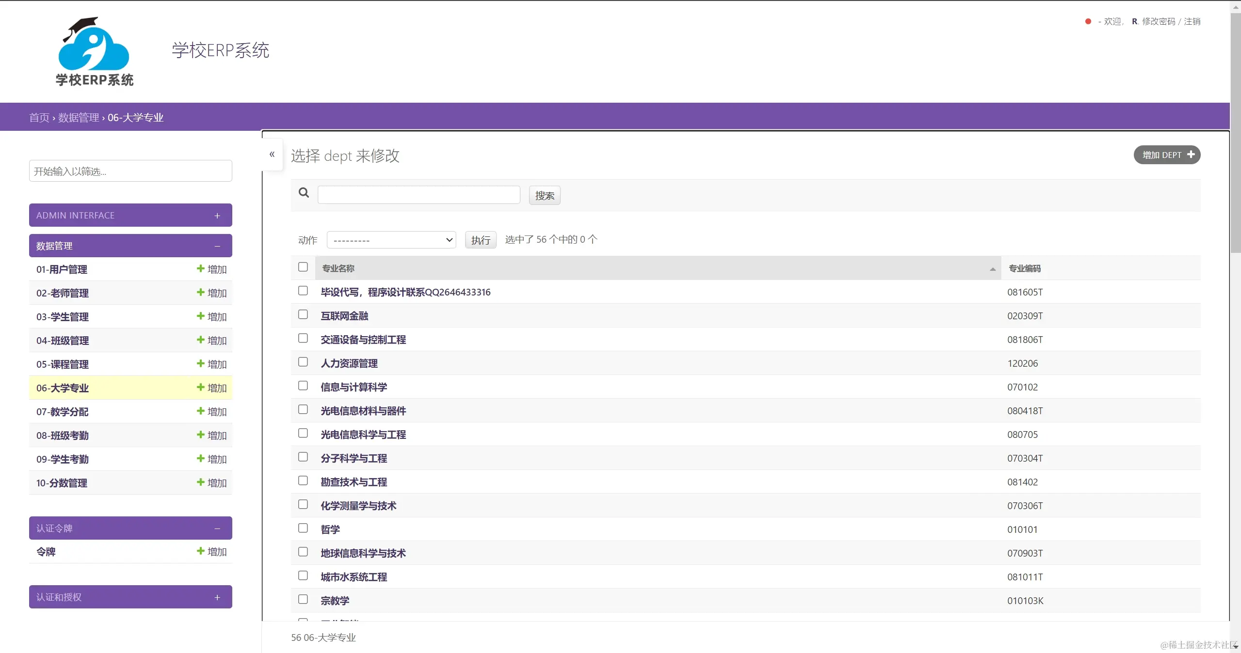 随着信息技术的快速发展,传统模式下的学校管理已经无法满足现代教育的需求。为了提升学校的管理效率,减少人工操作,并更好地服务于师生,我们决定采用Django框架开发一套学校ERP系统。该系统旨在实现学生管理、老师管理、考勤管理、分数查看等功能的智能化操作,为学校打造一个高效、便捷的管理平台。