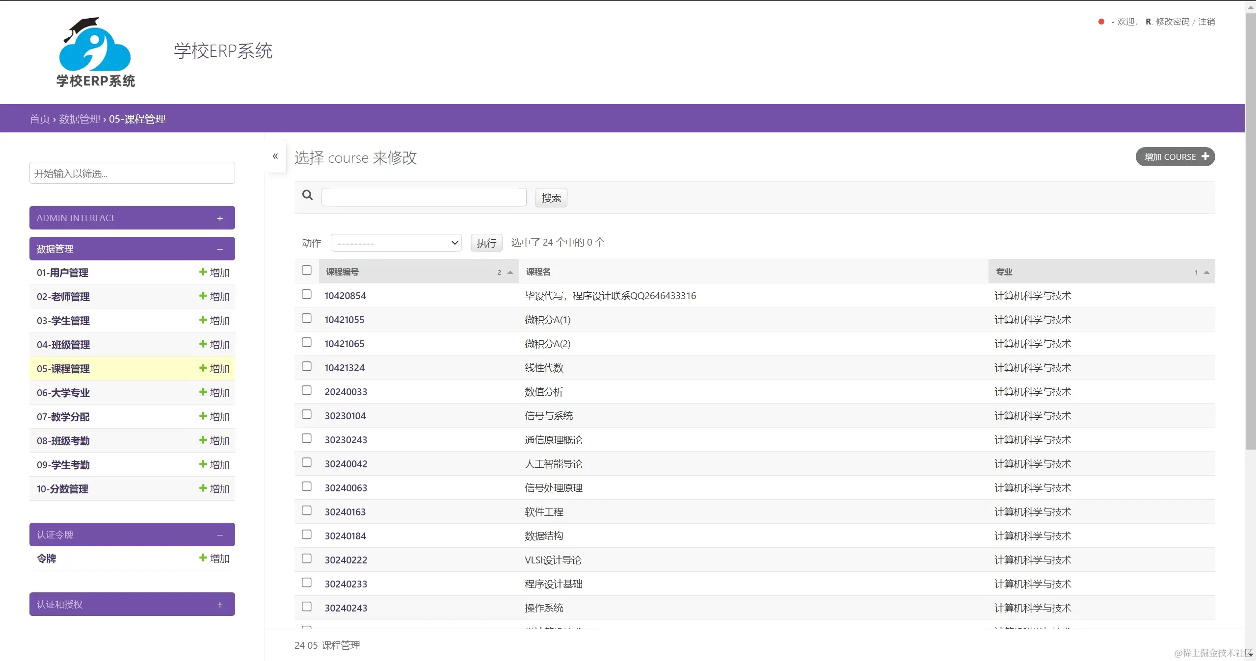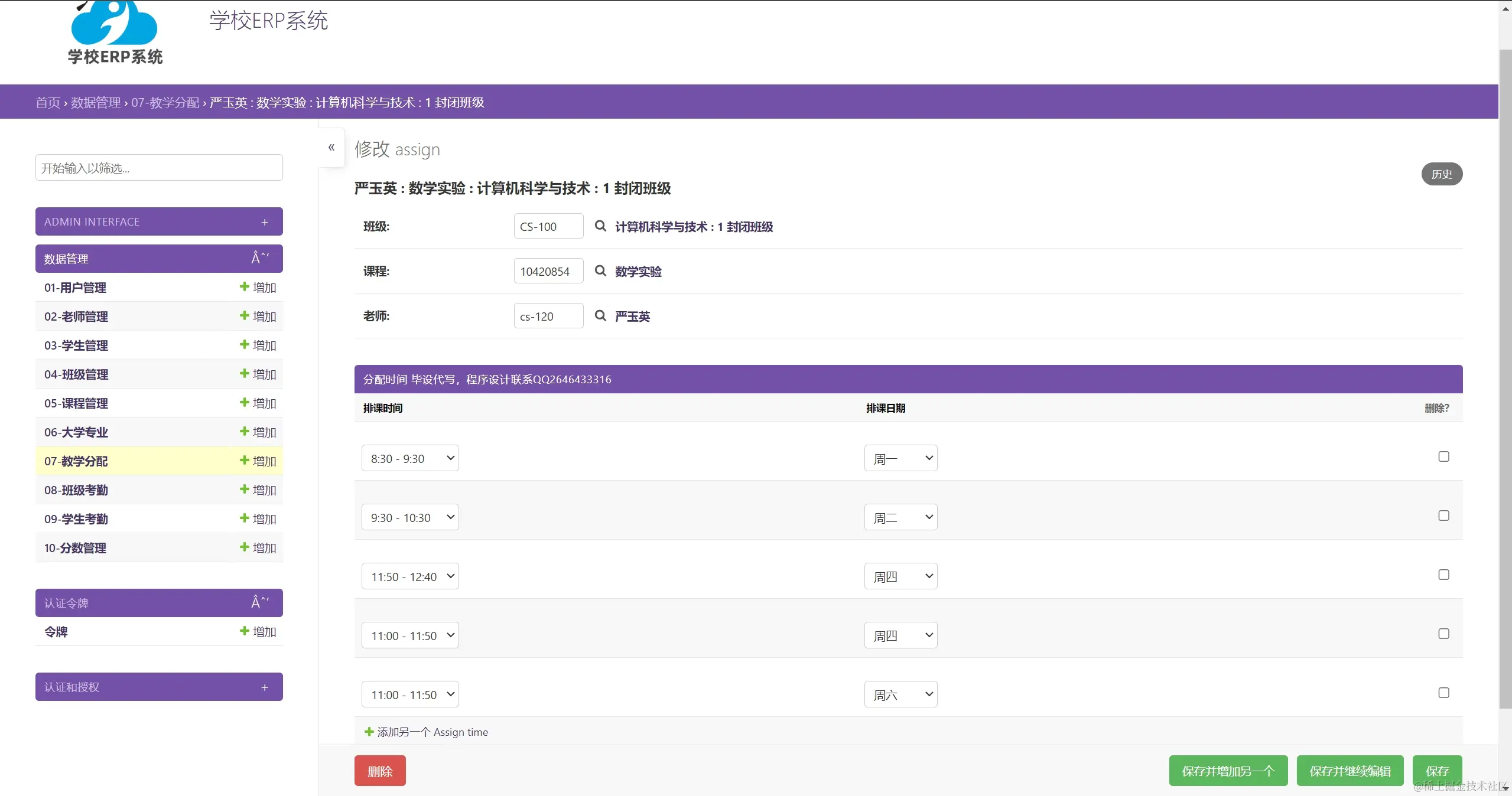 - 课程管理:设置和管理课程信息,包括课程名称、上课时间、授课老师等。