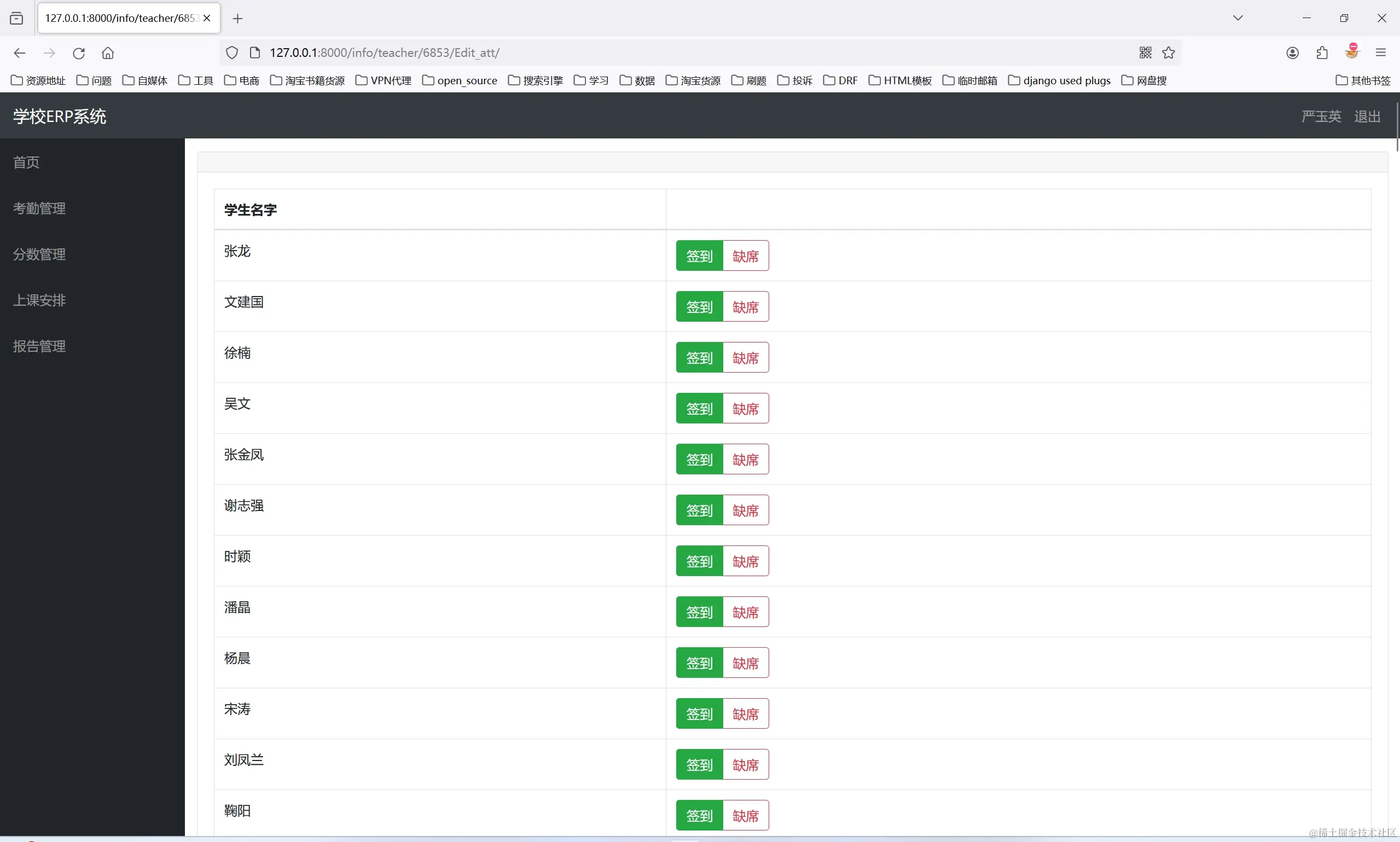 - 学生考勤:查看和管理所有学生的考勤记录。