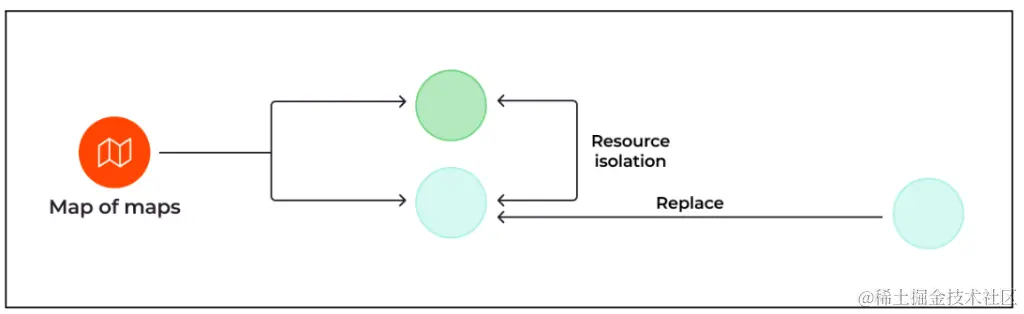 映射的映射导致两个具有资源隔离和替换功能的节点。