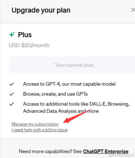 点击左下角账号选项My Plan,然后在弹出窗口点击如下的 ”Manage my subscription 小字即可跳转到管理页面,点击取消方案