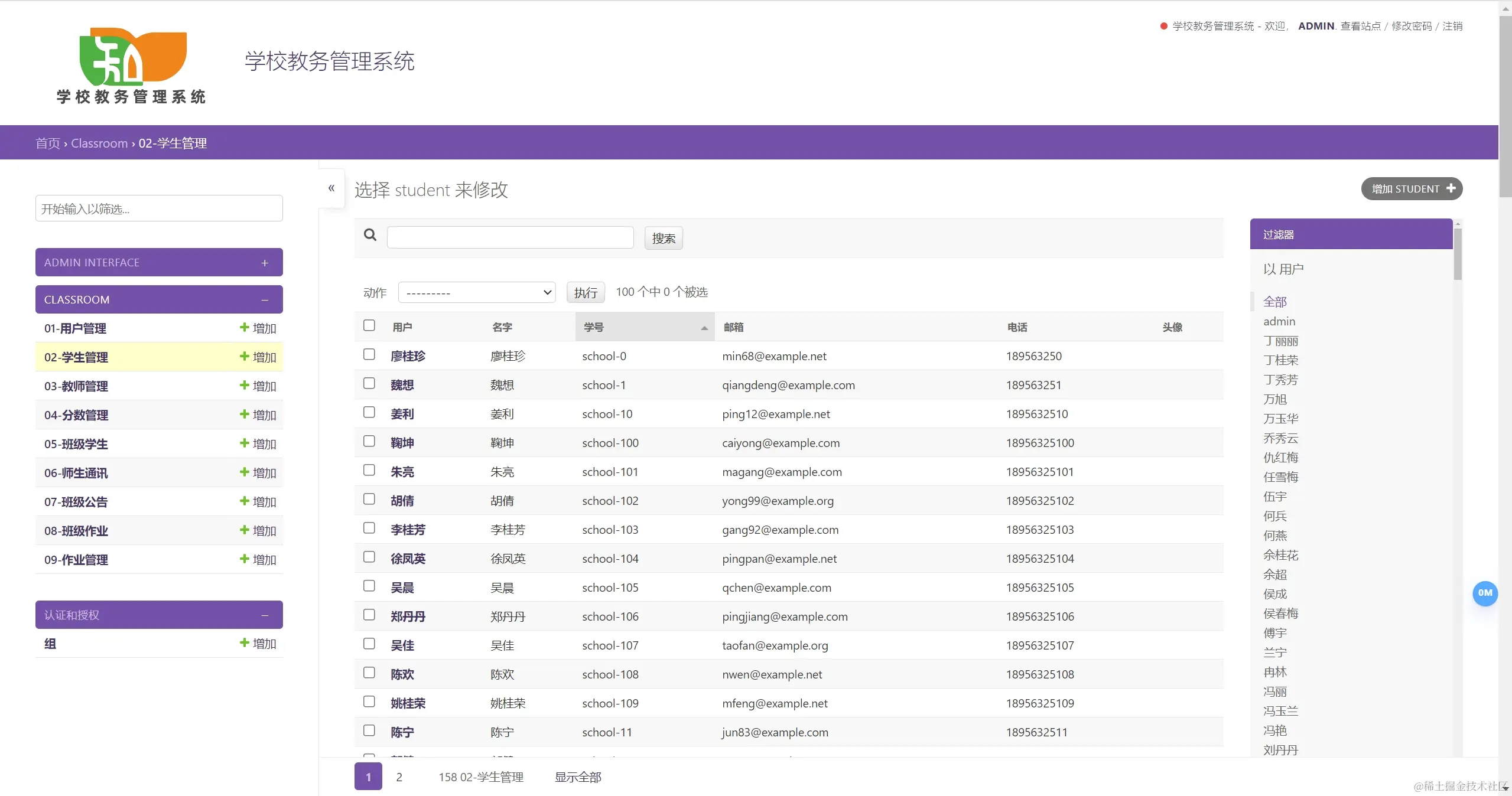 本教务管理系统专注于实现学生与老师之间的紧密关联,涵盖了班级管理、分数管理、作业批改、师生通讯、发布公告以及自主注册等核心功能,为用户提供开箱即用的便捷体验。