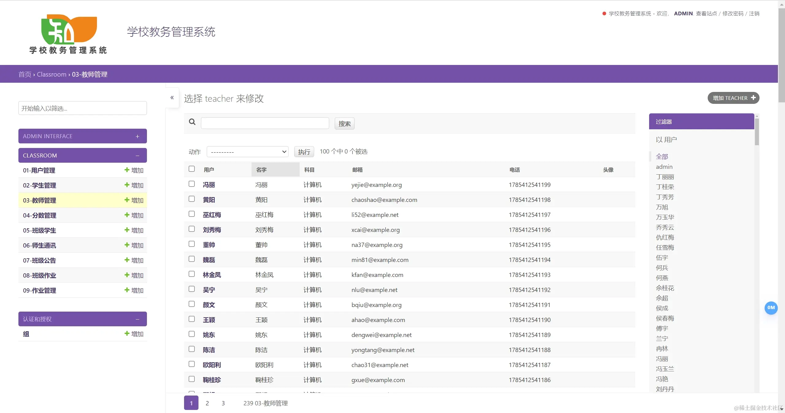 本教务管理系统利用Django框架的强大功能,实现了学生与教师之间的紧密联系与高效互动,为学校教务管理提供了有力的支持。无论是教师还是学生,都能通过该系统轻松完成各项工作和学习任务,提升教学效率和学习效果。
