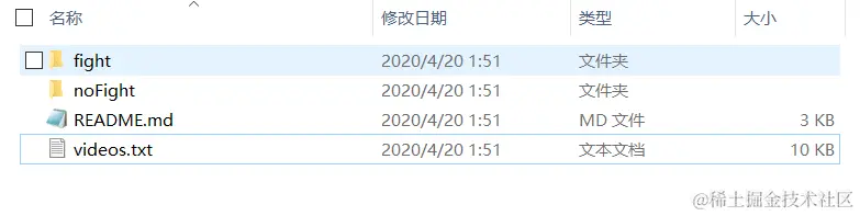 videos:相关视频,里面有两个文件夹,分别为 fight 和 normal。