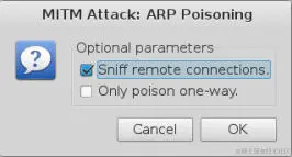 另一个值得提及的工具是中间人攻击框架:MITMf。它包含内建的 ARP 毒化、DNS 欺骗、WPAD 代理服务器,以及其它攻击类型的功能。