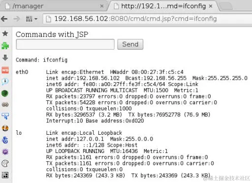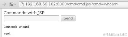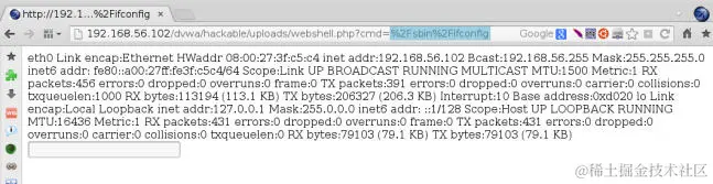 192.168.56.102。现在,我们可以在服务器中执行命令,通过将它们键入到文本框中,或者为cmd参数设置不同的值。