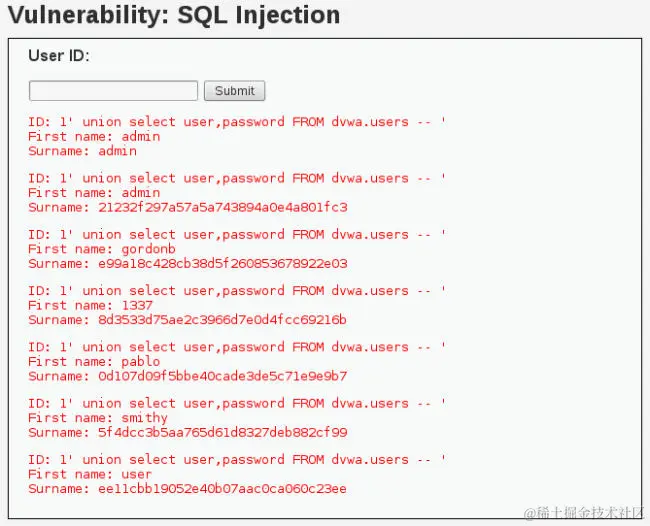 http://192.168.56.102/dvwa/并使用密码admin登陆任意用户,例如:inexistentuser: admin。用户现在登陆为管理员,并且攻击者拥有了对两个用户都生效的密码。)