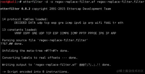下面我们需要为 Ettercap 编译过滤器来使用它。从终端中,执行下列命令。