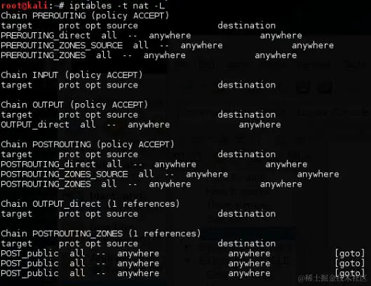 现在我们打算配置一些会泽来防止转发任何东西。首先,让我们检查我们的 iptables 的