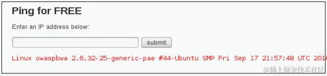 我们可以看到,它直接将用户的输入附加到 ping 命令后面。我们所做的仅仅是添加一个分号,系统的 shell 会将其解释为命令的分隔符,以及下一个我们打算执行的命令。