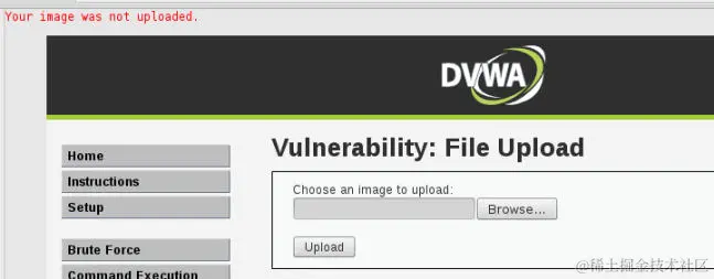 首先,让我们尝试上传我们的 webshell。在 DVWA 中访问