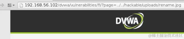 rename.jpg。访问文件包含部分并利用这个漏洞来包含../../hackable/uploads/rename.jpg:我们并没有得到这个文件执行的任何输出,我们需要假设