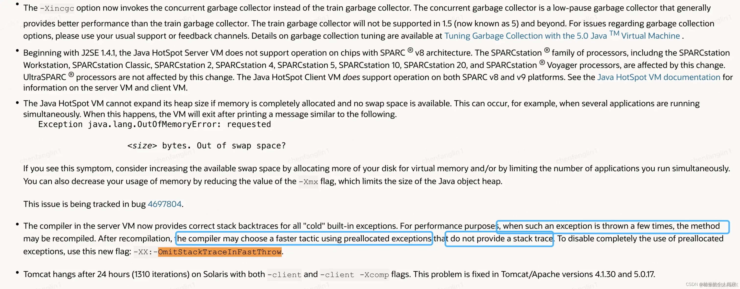 通过发现每每执行到一段时间堆栈就不打印了,这个是不是就是注释里说的极端情况.联系注释提到的 virtual machine. 次数+vm. 这块你想到了什么. 不知道你想到了什么 .在老早之前总结过 jit 的一些特性.一时间马上检索一下(关键字: jit 堆栈不打印优化).确实有了.