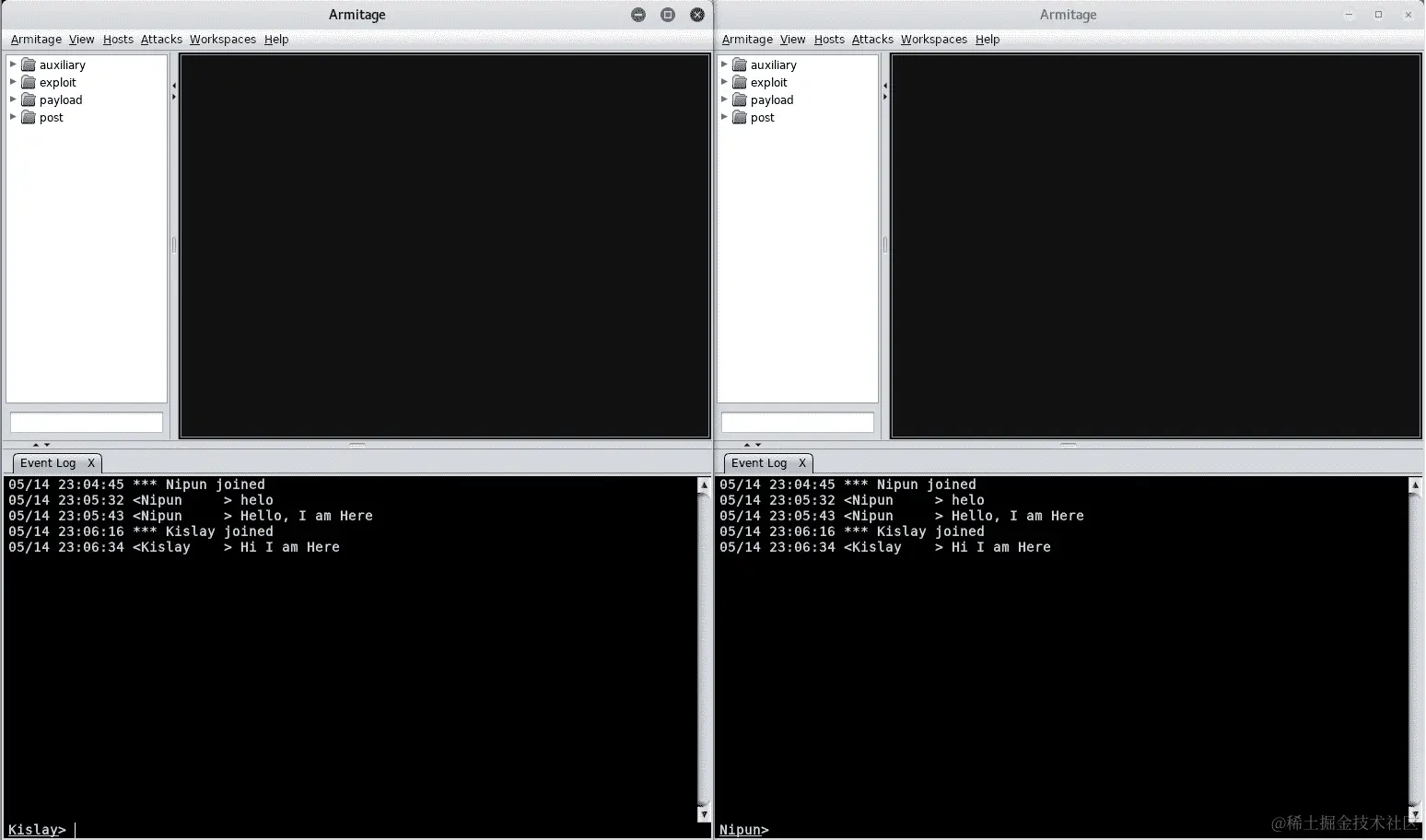 让我们也看看攻击者端是否有什么有趣的东西,或者没有:
